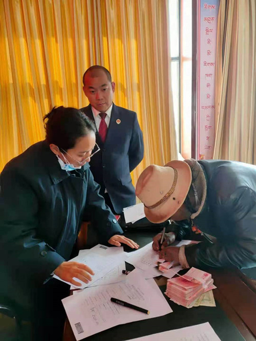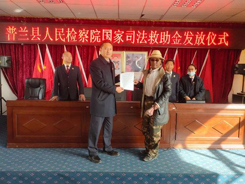 发放仪式上,首先由院党组书记、检察长、主办检察官次仁登巴宣读了石某国家司法救助决定书;其次由院党组书记、副检察长白玛群培向在座的群众讲解了石某国家司法救助一案;最后主办检察官次仁登巴向石某送达了《国家司法救助决定书》和发放了救助金。