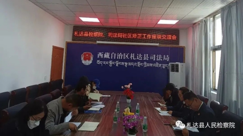 近日,我院同县司法局召开社区矫正工作座谈交流会议,院党组书记、检察长金美佑、县司法局局长土旦次仁出席会议,札达县司法局社区矫正工作人员以及我院检察业务部干警参加会议。