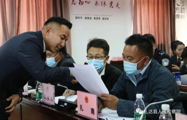 ,院党组副书记、副检察长、承办案件检察官次央,通过播放实地检查视频、展示鉴定结论等证据详细介绍札达县达巴乡达巴三组卡萨旧村庄附近拉康众终佛寺遗址和巴如塔群遗址内大量裸露在外的文物“