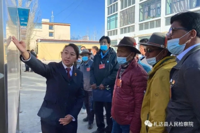 检察干警向代表们介绍我院改进作风狠抓落实工作开展情况、12309检察服务中心职能、抵边村检察联络站职责、接待接访范围等;播放了《札达县人民检察院2021年工作汇报片》,代表们更加直观地了解我院党史学习教育、政法队伍教育整顿工作亮点及为民办实事成果;同时向代表们演示了统一业务应用2.0系统案件办理的操作界面和流程,展示全国检察人员按照一个标准、运用一个程序、在一个平台办理案件。