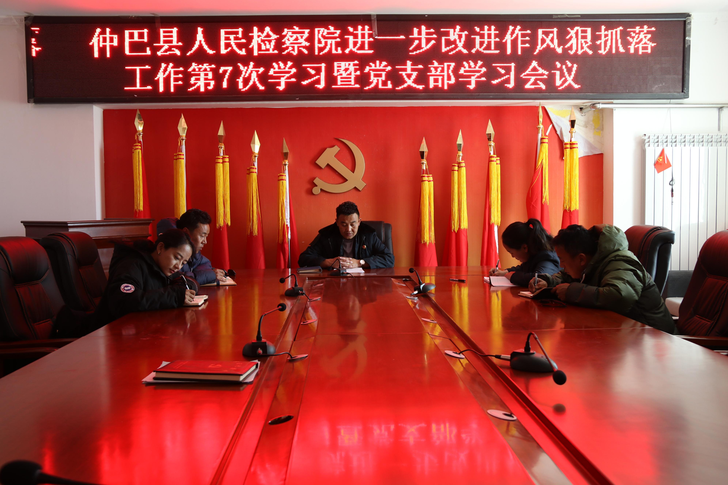 3月1日,我院召开进一步改进作风狠抓落实工作学习会,会议学习了《中央第七次西藏工作座谈会》精神 ,党组成员、副检察长拉琼主持,全体在家干警参加会议。
